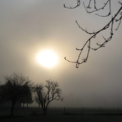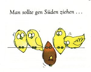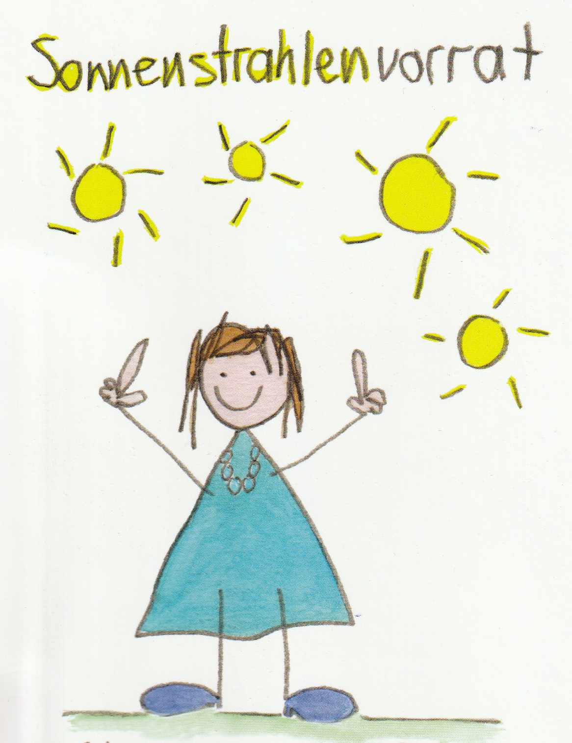 Es ist nicht immer einfach, Sonne im Herzen zu fühlen, vor allem, wenn sich der Nebel in diesen Wochen frühmorgens statt zu lichten noch verdichtet. Wenn dann außerdem das Wissen dazukommt, dass 10 km entfernt der Himmel blau ist und die Sonne sogar wärmt, dann benötigt es mitunter schon ein kleines Hilfsmittel, um bei guter Laune zu bleiben. Eine liebe Freundin sandte mir schon vor Jahren eine Karte, die diese Dienste leistete, – inzwischen habe ich die Botschaft verinnerlicht und ich kann innerlich Sonnenstrahlen anknipsen!