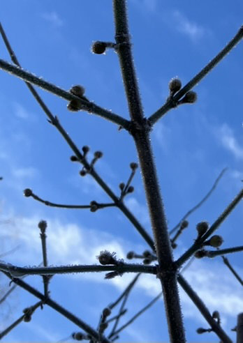 Heuer eine Kornelkirsche. Ich weiß, wie sie in voller Blüte aussieht. Ob sie auch zu Weihnachten blühen wird?